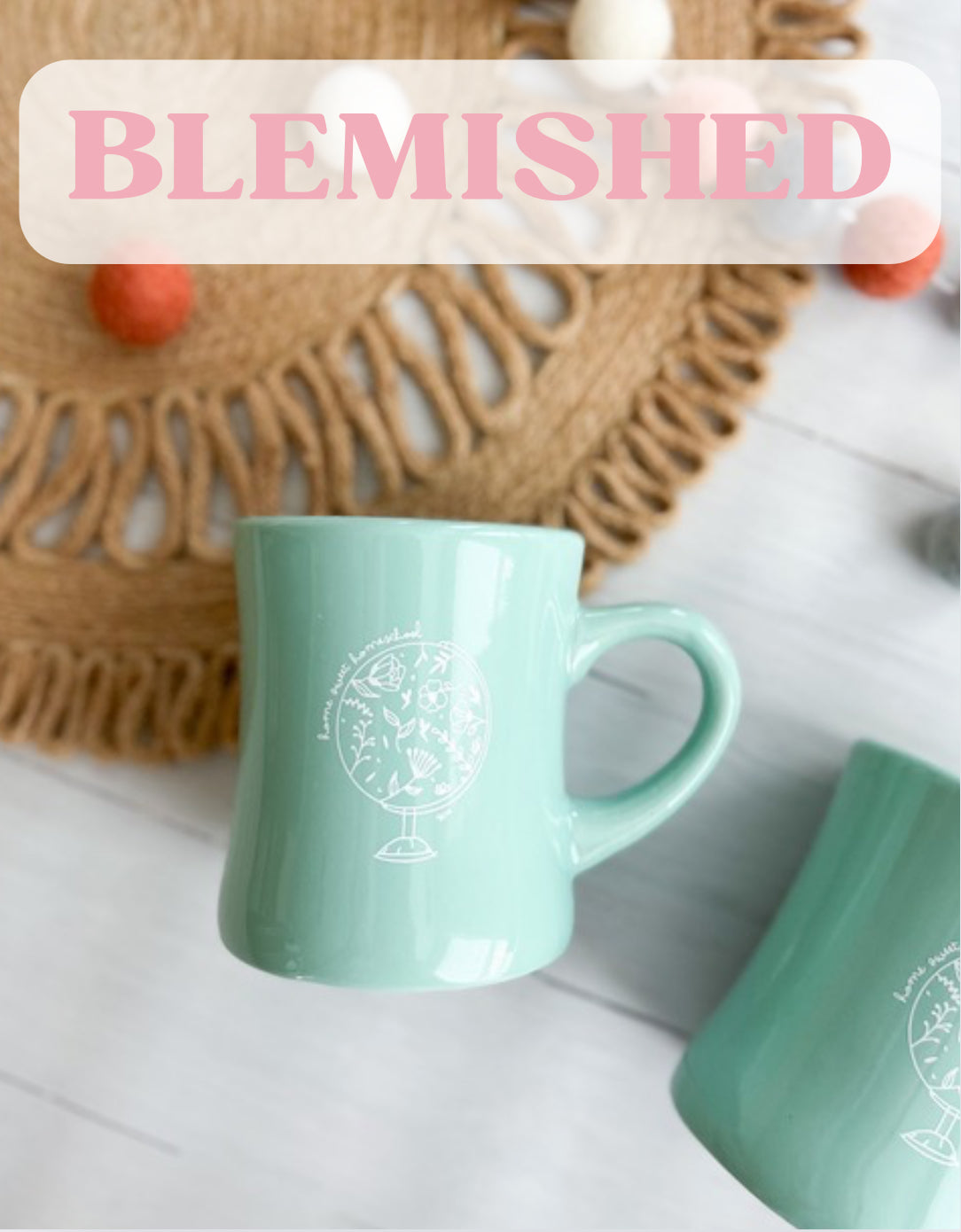 Regularly $20. || All blemished mugs are final sale and will have a minor defect to the imprint or to the mug itself. Though imperfect, your mug is still super adorable and completely useable! Let’s give these cuties a chance at living the good life with your coffee or tea!