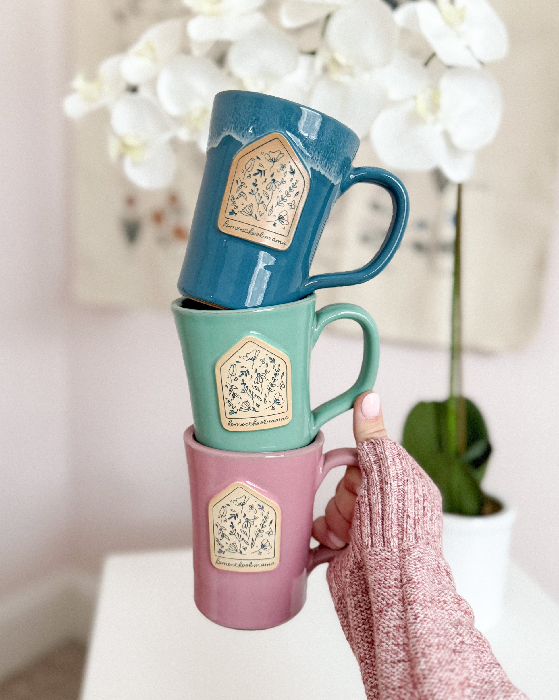 Are you a homeschool mama? These gorgeous mugs are handmade by talented potters in Minnesota, USA. They boast a large 4-finger grip handle (so comfy) and hold roughly 12oz. The gorgeous glazed are lead-free and food safe! These beauties are perfect for keeping your coffee or tea piping hot while you homeschool your children & more!