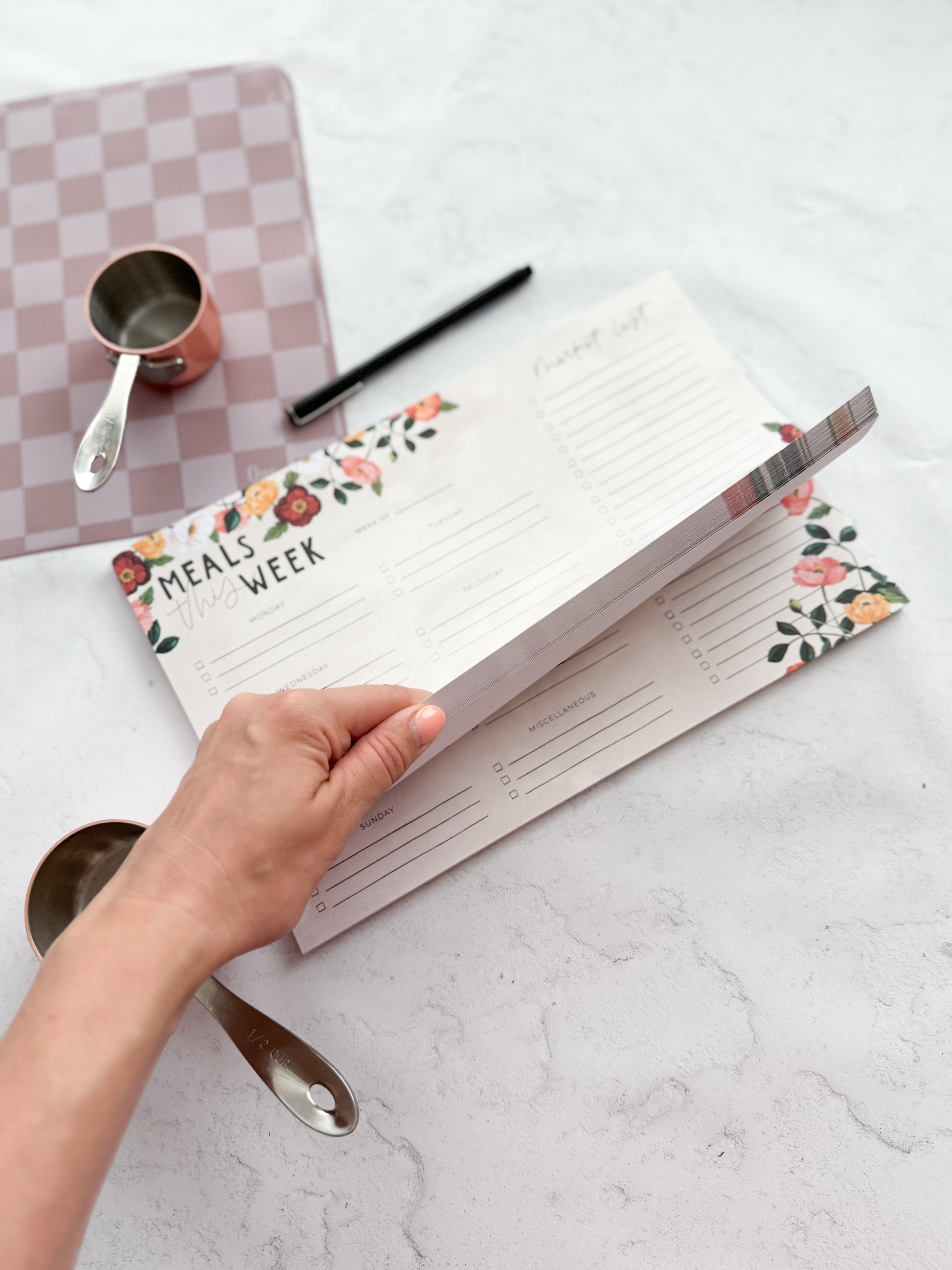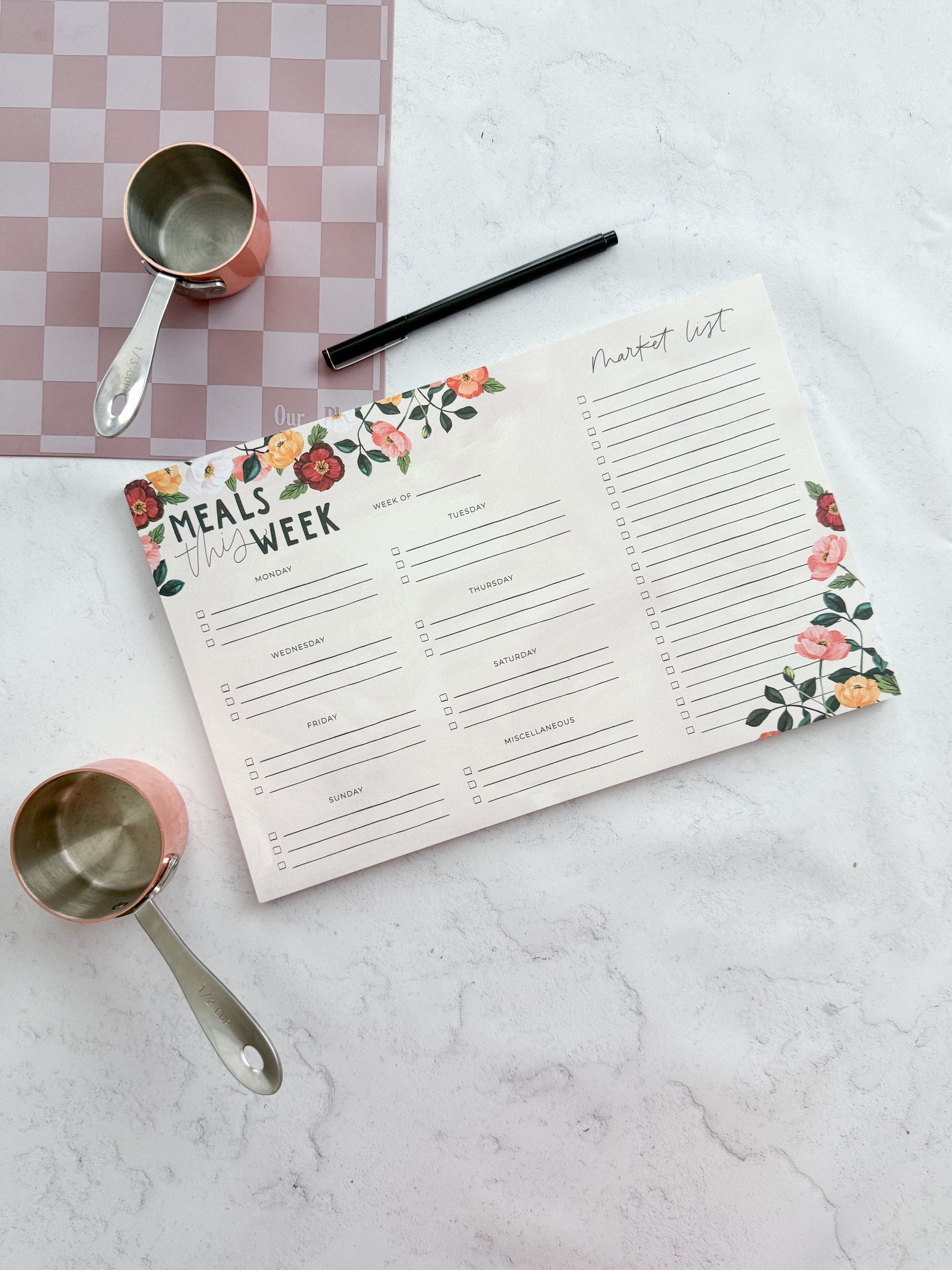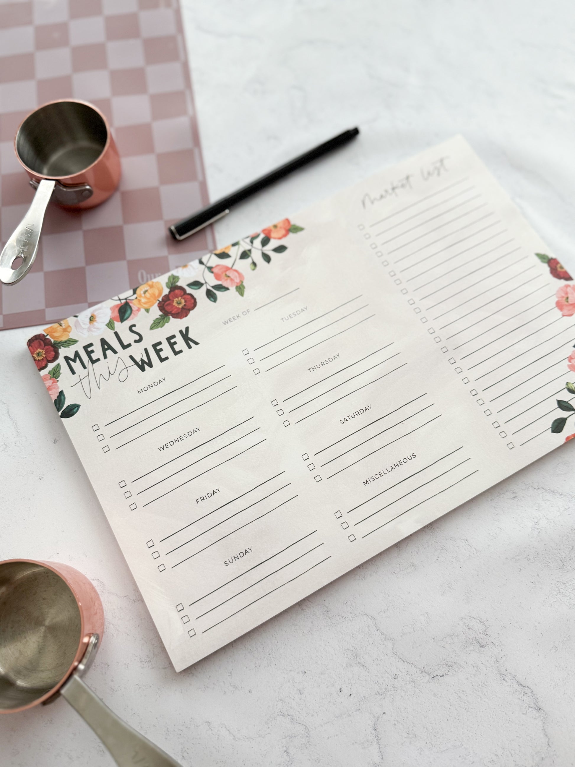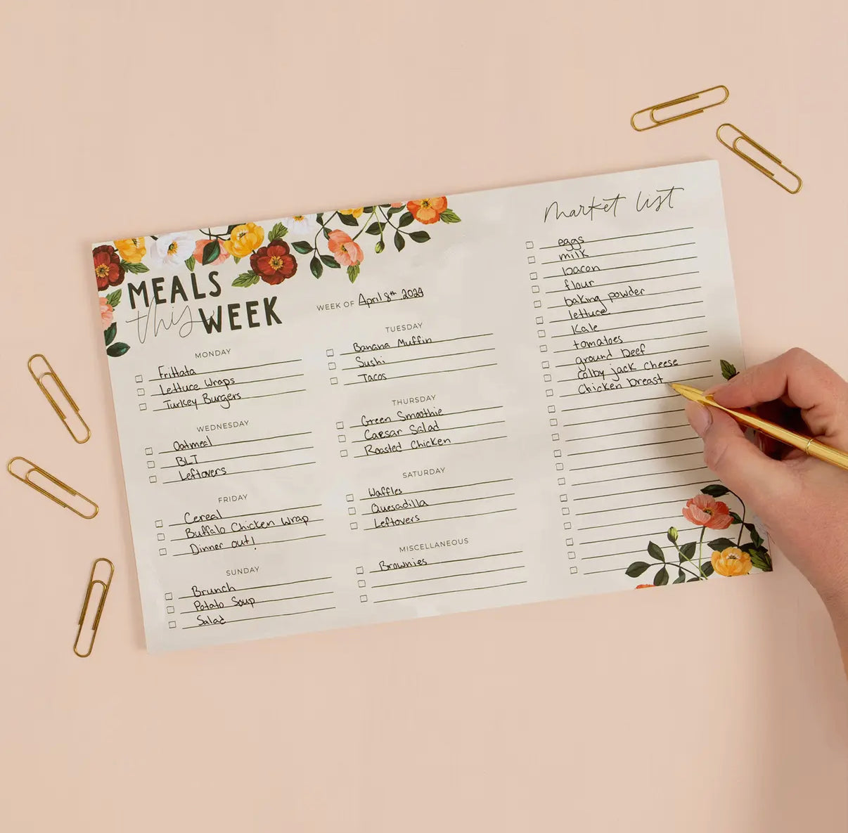 Plan your meals with a touch of floral elegance using the Poppies Menu Notepad. Featuring vibrant poppy blooms, this notepad provides a stylish space for organizing your weekly menu. With a market list section, this notepad makes a delightful addition for home cooks and those who appreciate functional yet beautiful kitchen accessories.