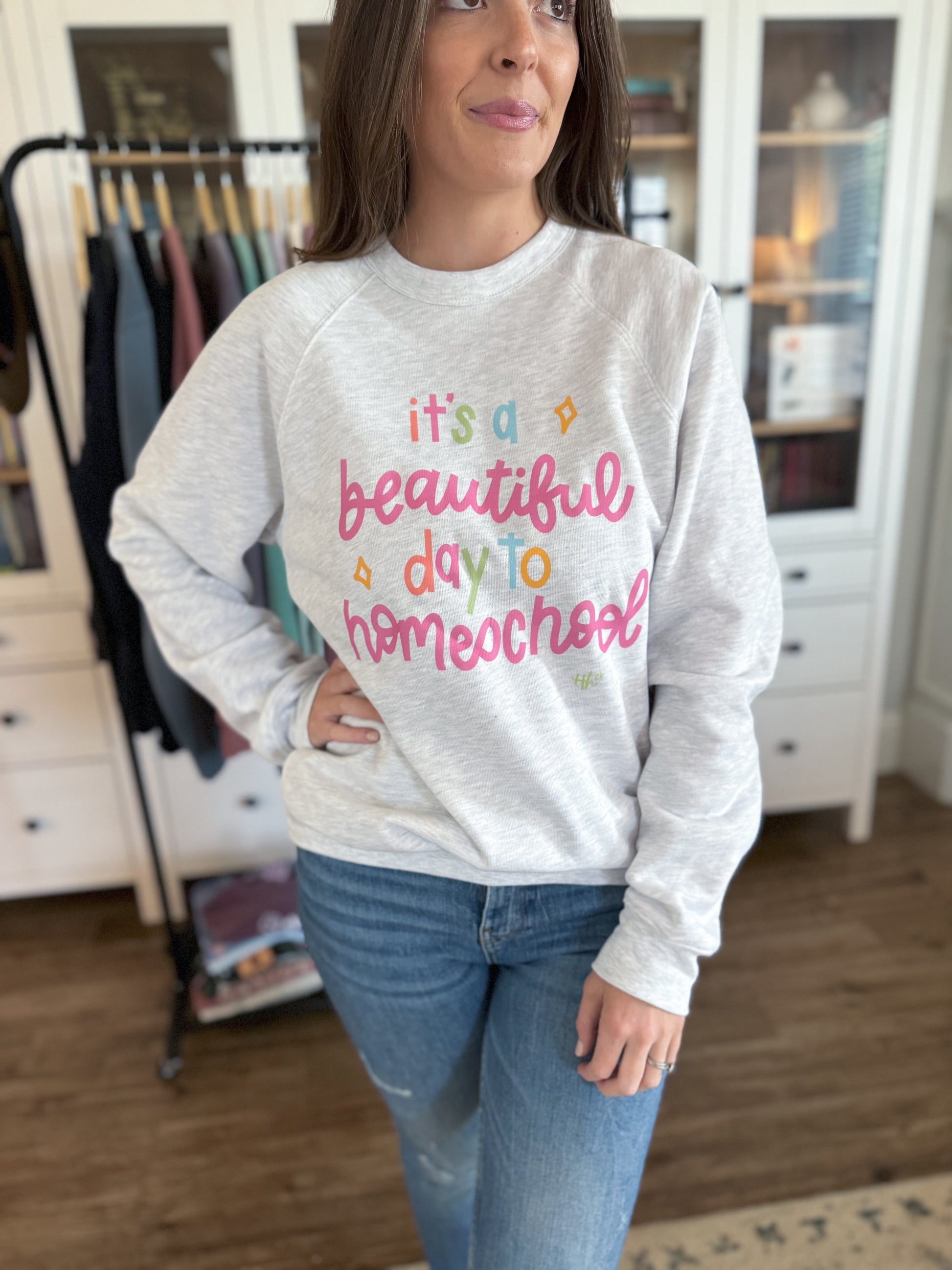 Are you a homeschool mama?! You're going to love this one! Our “It's A Beautiful Day to Homeschool” design is DTF transferred right here in Texas! This super soft Bella Canvas fleece sweatshirt fits true to size and comes in the color ash gray! I pray this fun design helps you notice the beauty in what you're doing as a homeschool mom!