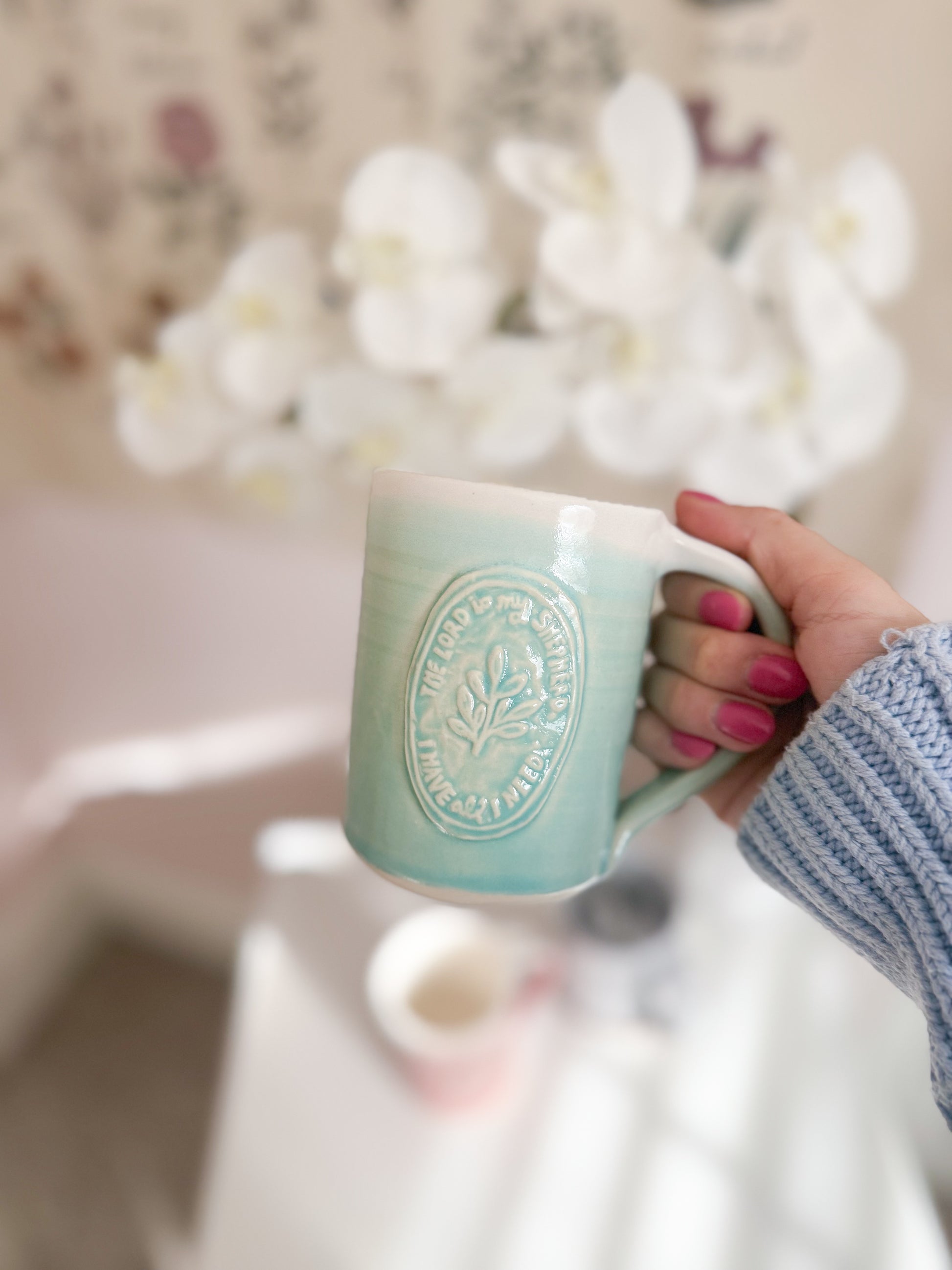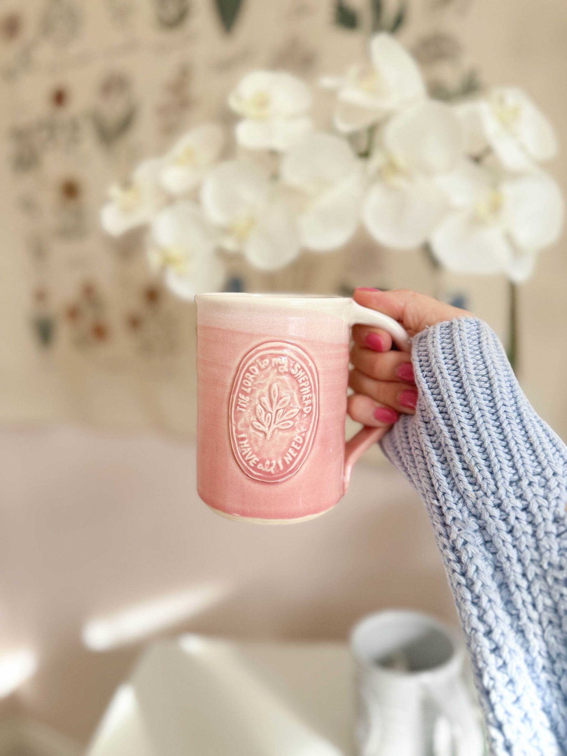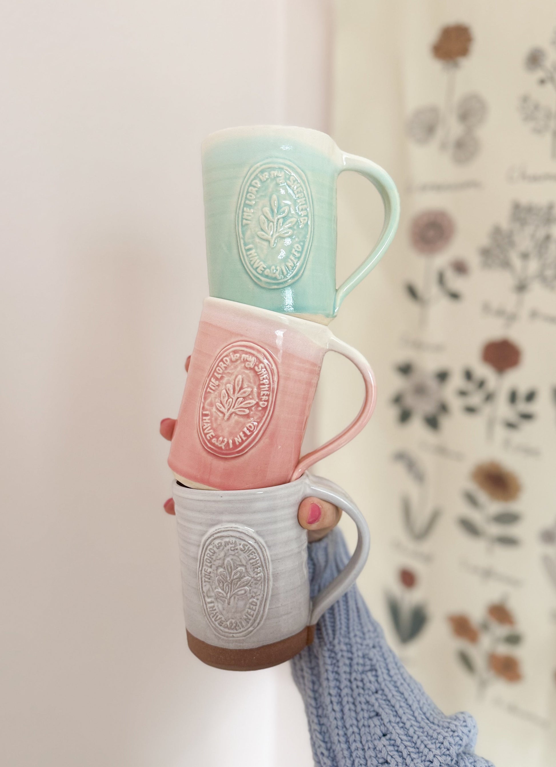 The very definition of a “hug in a mug!” This gorgeous design reads “the Lord is my Shepherd, I have all I need,” Psalm 23:1. This is a verse I have clung to and I think it’s the perfect morning reminder.